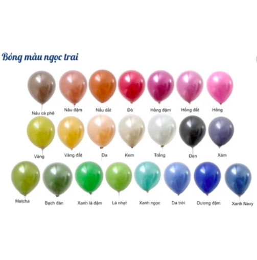 Bóng Màu ngọc Trai 10” kích thước bơm ~ 25 cm không nên bơm quá 25cm sẽ vượt kích cỡ của bóng dễ gây nổ Bóng rất dầy dặn nên rất thích hợp làm trang