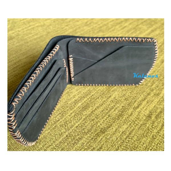 ️Tên sản phẩm: Bóp ví da bò sáp cao cấp handmade độc đáo màu đen Kalanos - Mã số: KBN610-Den