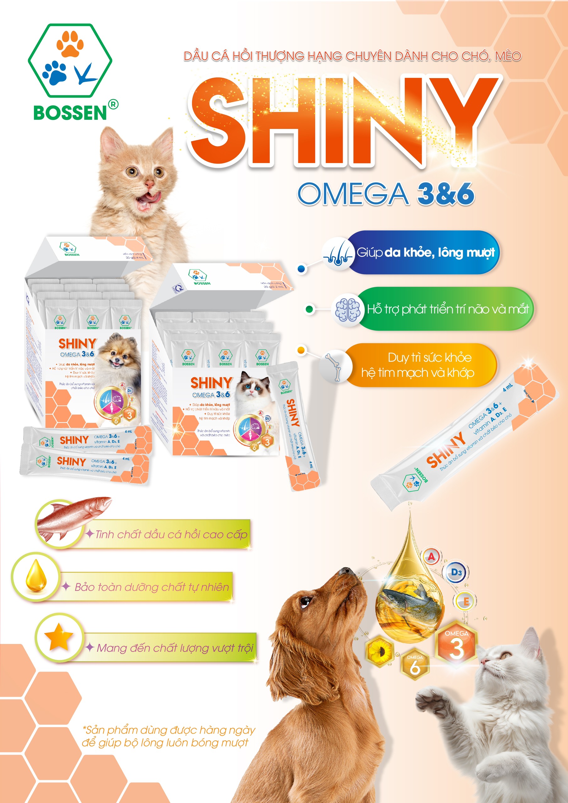 ✨BOSSEN - SHINY for Dog Bổ sung Vitamin và Acid béo Thiết Yếu cho Chó - Hộp nguyên 20 gói 4ml