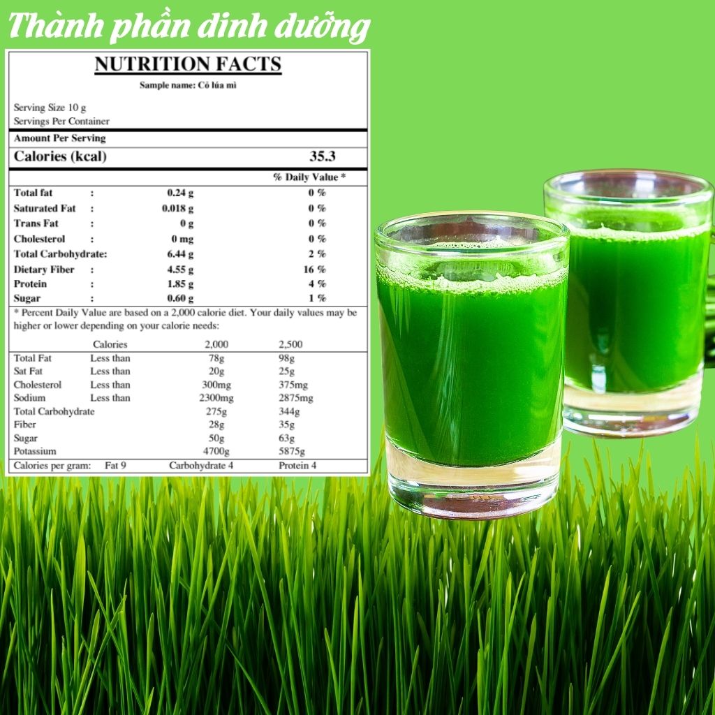 - Dinh dưỡng trong cỏ lúa mì rất dễ bị phá hủy khi nhiệt độ trên 75oC nên khi cho vào cháo/mỳ/phở, làm nguội xuống dưới 75oC rồi mới cho bột rau vào trộn đều