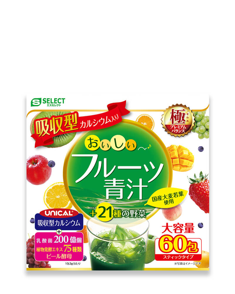 Bột lá đại mạch non, rau xanh và trái cây S Select Nhật Bản ( hộp 60 gói) giúp bổ sung chất xơ, vitamin từ 21 loại rau củ quả và chiết xuất của 75