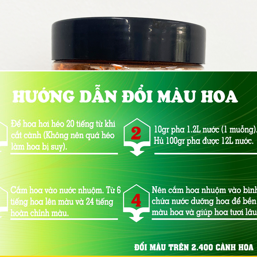 - BỘT NHUỘM MÀU HOA TƯƠI “CHUYÊN NGHIỆP” Nhằm đáp ứng Nhu cầu Giá Rẻ và chất lượng nhuộm "vừa phải" nhưng vẫn "đặc biệt chuyên nghiệp" dành nhuộm đổi màu hoa cắt cành theo