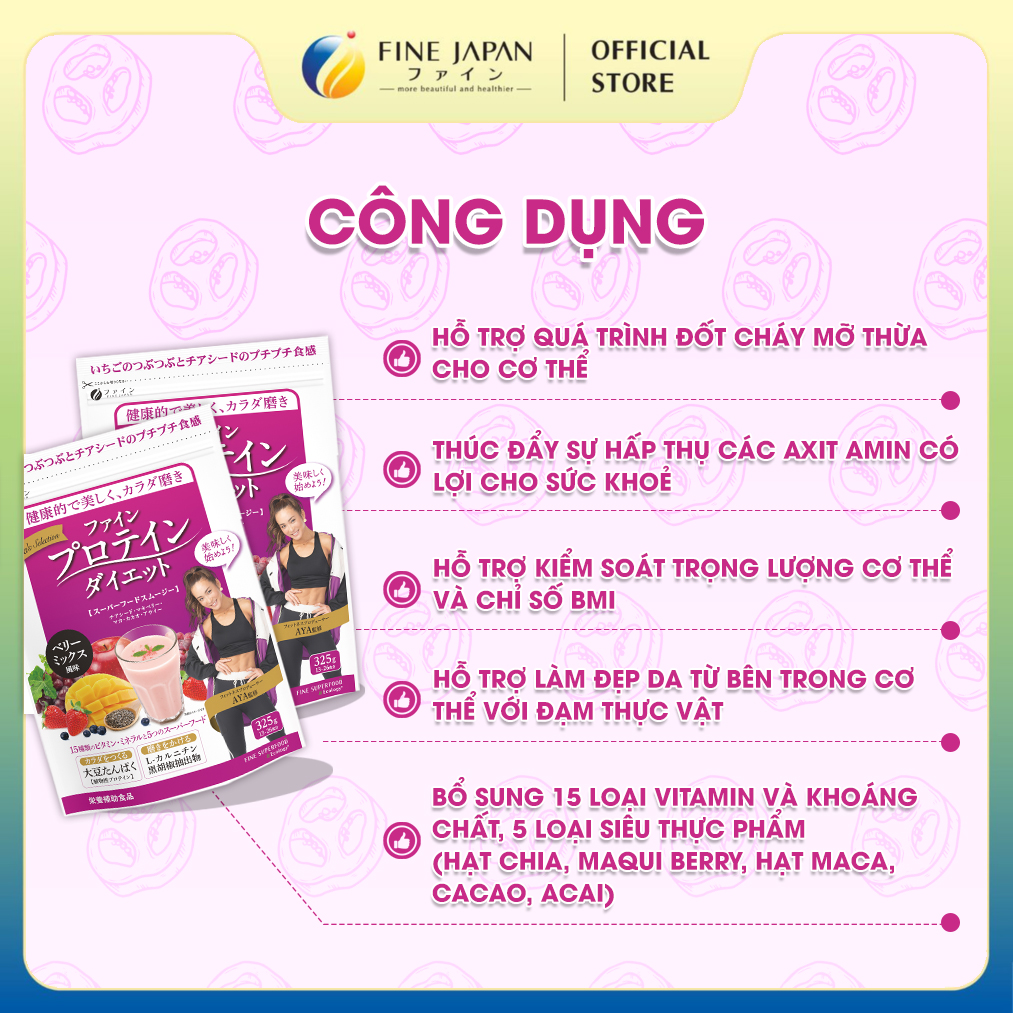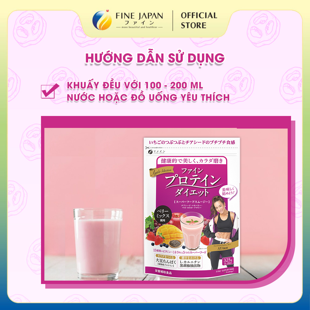 ► Bột Protein thực vật Aya’s Selection Protein Diet FINE JAPAN vị Mix quả mọng gói 325g