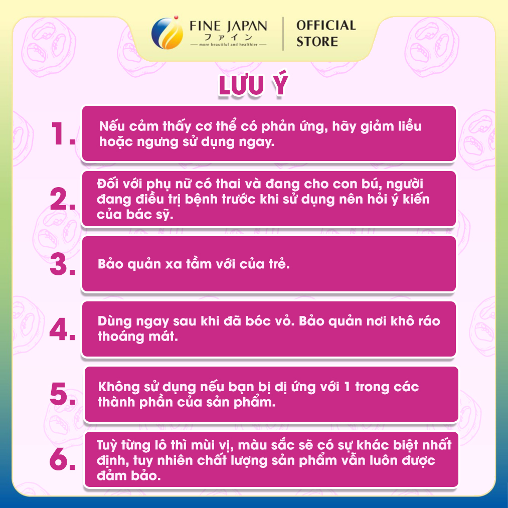 Được thành lập vào năm 1974, với trụ sở chính tại Osaka, Nhật Bản. FINE sở hữu Viện nghiên cứu riêng Bio Research Center, quy tụ các giáo sư và chuyên gia dinh dưỡng hàng đầu tại Nhật Bản. FINE JAPAN không ngừng nghiên cứu, phát triển thêm thành phần mới đáp ứng với nhu cầu của đa dạng người dùng trên toàn thế giới. Nguyên liệu của FINE đều được tuyển chọn kỹ càng với phương châm “chất lượng”. Minh chứng điển hình không chỉ nằm ở nguồn gốc xuất xứ thiên nhiên dưới sự kiểm soát chất lượng nghiêm ngặt mà còn ở hệ thống máy móc, dây chuyền sản xuất hiện đại và tiên tiến.