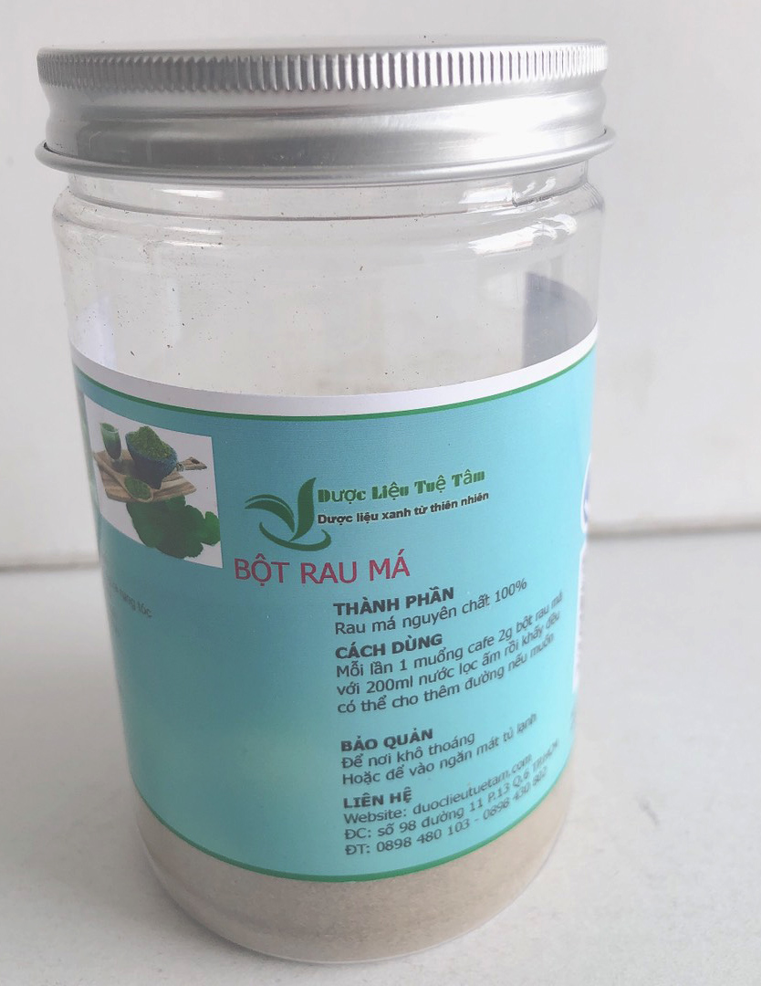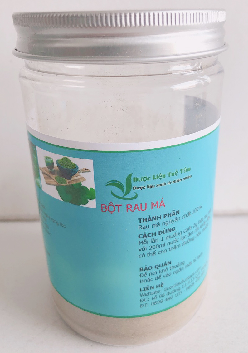 - Thứ hai là cách sử dụng bột rau má để làm mặt nạ. Các bạn có thể cho 3 muỗng bột vào chén rồi thêm vào một ít nước ấm sao cho vừa tạo hỗn hợp sền sệt, sánh mịn là có thể thoa lên da mặt. Kế đến thư giãn trong 30 phút rồi rửa sạch. Ngoài ra các bạn có thể thay thế nước ấm bằng sữa chua, sữa tươi, mật ong,… Tùy vào nhu cầu sử dụng của bạn cũng như có thể dùng những hỗn hợp này cho cả body để có được làn da trắng hồng, ngừa mụn và mờ thâm hiệu quả. Qua 2 cách dùng bột rau má đơn giản, chúng tôi tin nếu kiên trì sử dụng thì các bạn sẽ có được một sức khỏe tốt và một làn da mịn màng, như ý THÔNG TIN SẢN PHẨM