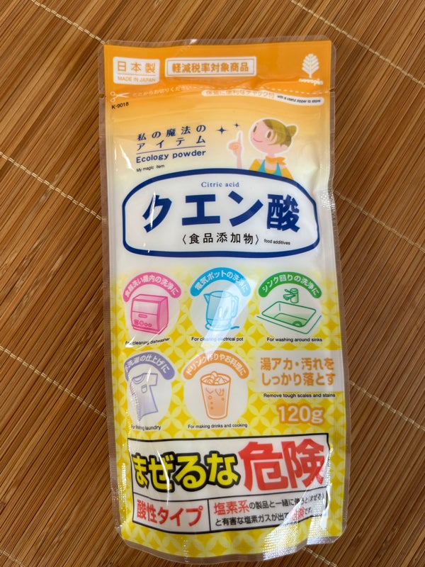 Bột tẩy đa năng Axit Citric 120g (phụ gia thực phẩm) THÔNG TIN SẢN PHẨM Xuất xứ: Nhật Bản - Màu sắc: Màu trắng - Kích thước: 175(W)x89(D)x25(H)(mm) - Chất liệu:Thành phần trong mỗi túi