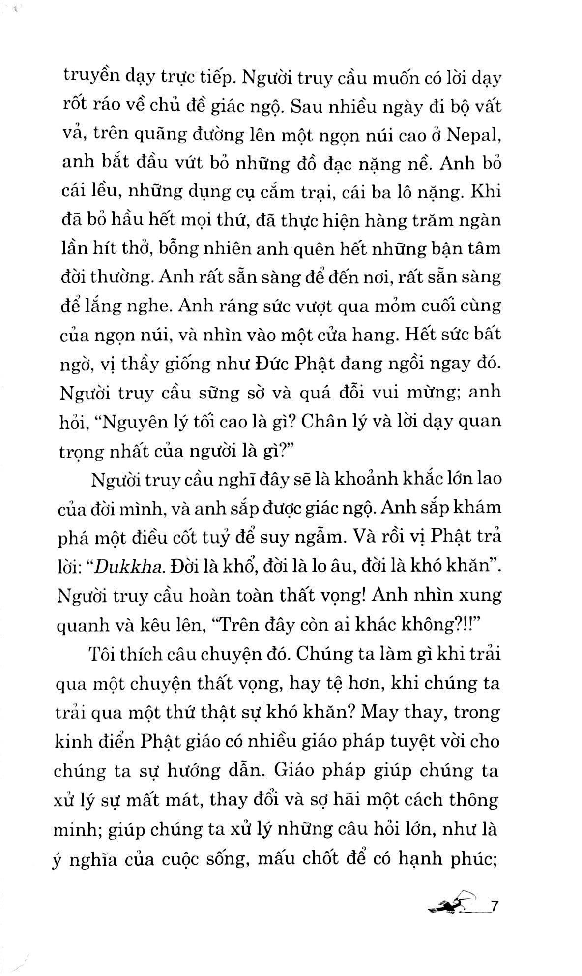 Theo Wayne Teasdale, tác giả của THE MYSTIC HEART: “Chuyển dịch, đổi thay, đau khổ, cái chết và những mất mát khác là không tránh khỏi, và việc xử lý chúng không dễ dàng gì. Chúng là những thực tế mà chúng ta muốn tránh né hoặc giảm thiểu, nhưng chúng thật sự là một phần của cuộc sống. Chúng ta phải đối mặt với chúng bằng sự dũng cảm, khoan dung, sáng tỏ và trí tuệ. Lama Surya Das dạy chúng ta làm thế nào thực hiện điều đó với tinh thần giác ngộ, minh triết lớn lao nhưng thiết thực, sự khiêm tốn, và lòng trắc ẩn hiệu quả. Cuốn sách là một bằng chứng khác về những năng lực tinh thông của ông như một vị thầy tâm linh.”