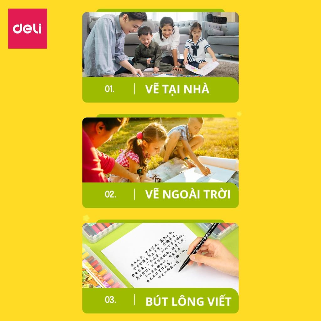 Hộp 24 Bút Lông Màu Cọ Mềm - Deli EC10324 Bút lông màu mềm, lướt êm, mực ra đều, giúp viết và vẽ nhanh, đẹp. Nét mực có độ dày và độ đậm vừa phải,