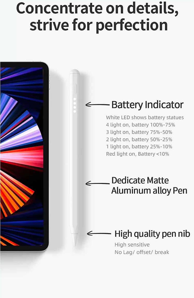 Với độ chính xác hoàn hảo đến từng pixel bền bỉ và đầu bút được nâng cấp, chiếc bút dành cho iPad này hoạt động chính xác như một cây bút thật, rất phù hợp để tô màu, phác thảo, ghi chú, đánh dấu PDF, v.v. Không bị trễ, không bỏ qua, không trầy xước.