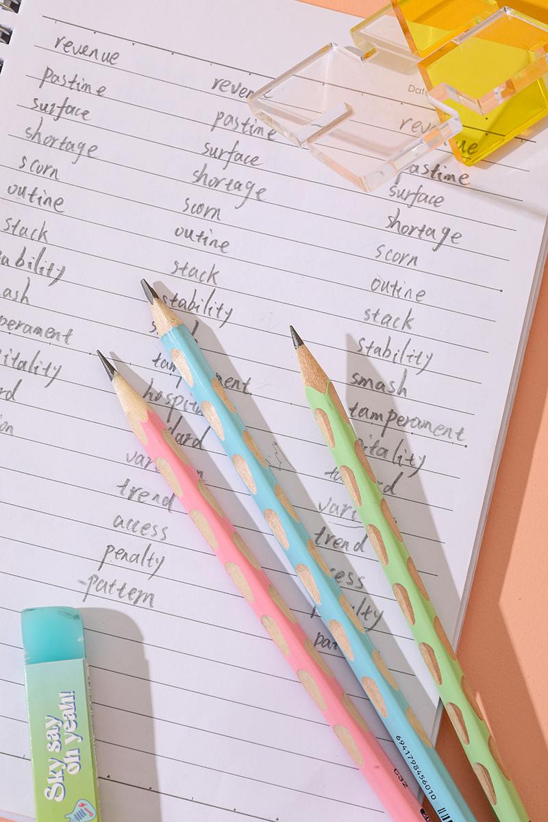 Thân bút chì được khoét lỗ giúp định vị ngón tay khi cầm bút.