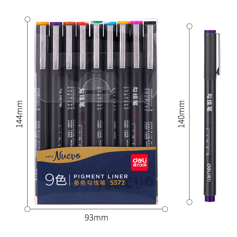 ✨Bút Đi Nét Deli - Ngòi Bọc Kim Loại 0.5Mm - Màu Gốc Nước - 9 Màu 9 Chiếc/Hộp - 1 Hộp - S572