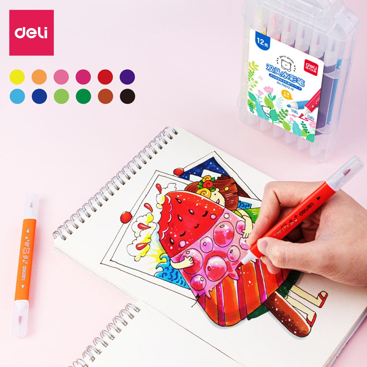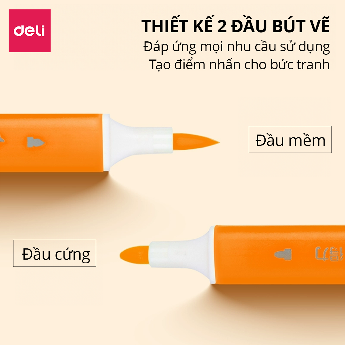 Mua tại TiktokBÚT MÀU DẠ NƯỚC 2 ĐẦU DELI - ĐẦU CỨNG - MỀM - KÈM HỘP NHỰA