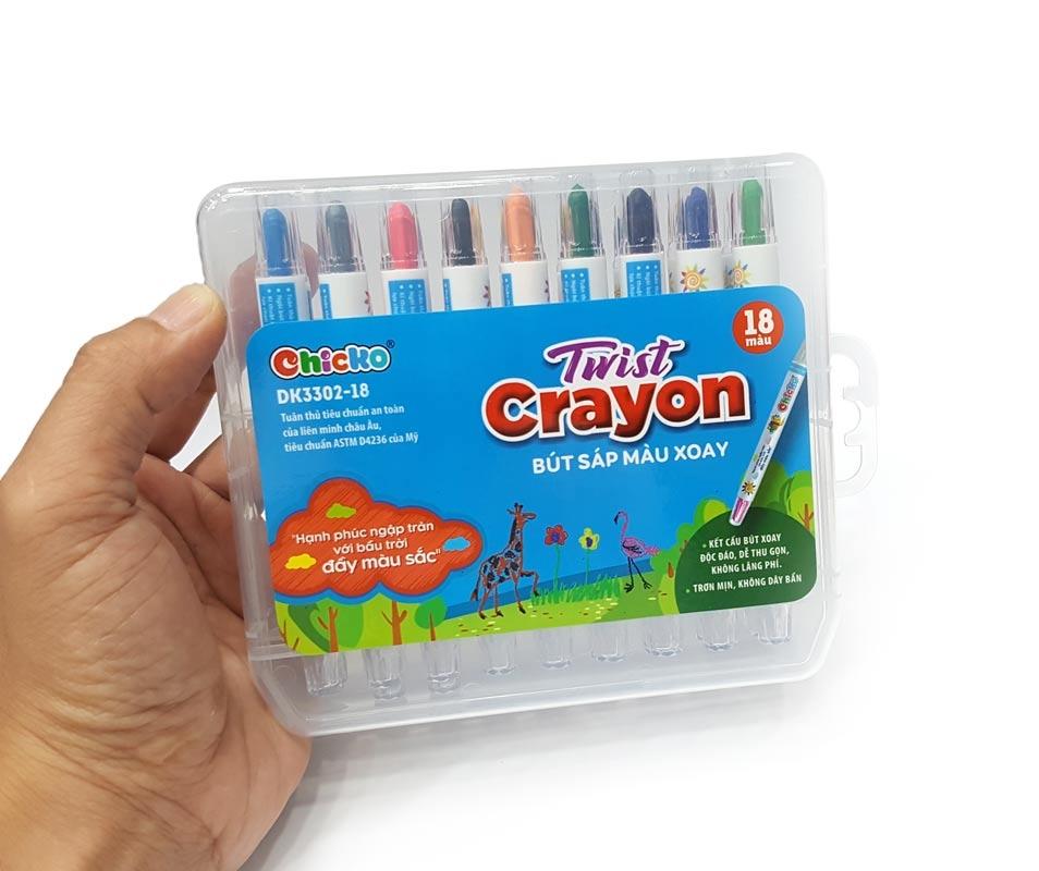Bút Sáp Màu Xoay - 18 Màu DK 3302-18 (Hộp Nhựa PP) Sản phẩm được làm từ chất liệu sáp cao cấp, độ bám dính cao, màu sắc tự nhiên, an toàn cho sức khỏe