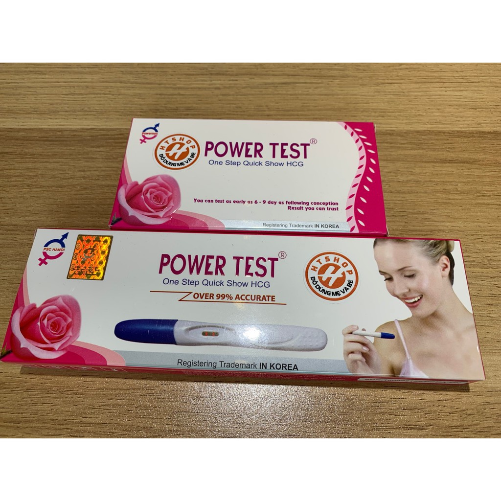 Tên sản phẩm: Que thử thai PowerTest Kích thước test: rộng 5mm Tính năng: Phát hiện thai sớm sau 6 -9 ngày trứng rụng ƯU ĐIỂM: Phát hiện thai sớm sau 6 -9 ngày