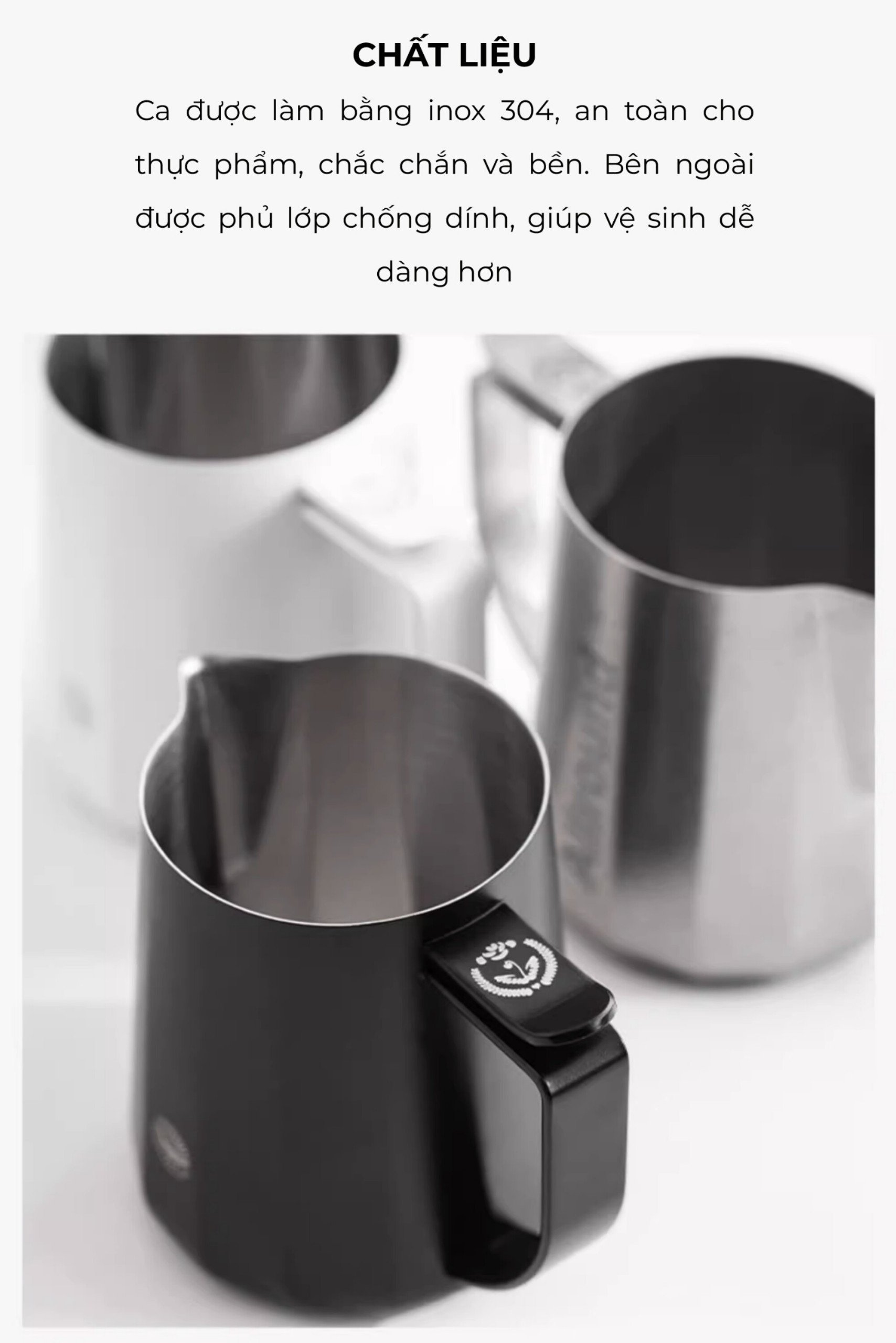 CA ĐÁNH SỮA ALL ROUND 480ml CAFEDE KONA Từ sự chuyên nghiệp lên tầm nghệ nhân Allround_Chiếc ca được các quán quân cuộc thi MBA Latte Art cùng nhau thiết kế. Với thiết kế 14