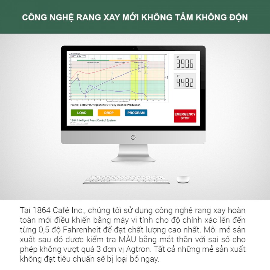 Cà phê thương hiệu 1864 CAFÉ là dòng cà phê tinh khiết, hoàn toàn không tẩm hóa chất bảo quản, hóa chất tạo bọt, tạo vị, tạo hương cà phê, vani, chồn, sô cô la, cũng không tẩm dầu, bơ, rượu, caramen và cũng không độn bắp, đậu nành, xác cau … Trong suốt quá trình sản xuất, Chúng tôi không thêm vào sản phẩm bất kỳ chất phụ gia thực phẩm hoặc các loại nông sản khác.