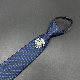 Cà vạt 6cm màu xanh chấm thắt sẵn đính đá trắng sang trọngCà vạt 6cm màu xanh chấm thắt sẵn đính đá trắng sang trọng