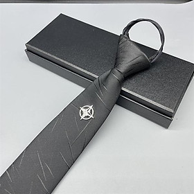 Cà vạt nam thắt sẵn 6cm màu đen hoạ tiết gắn tag cài thời trang 2024
