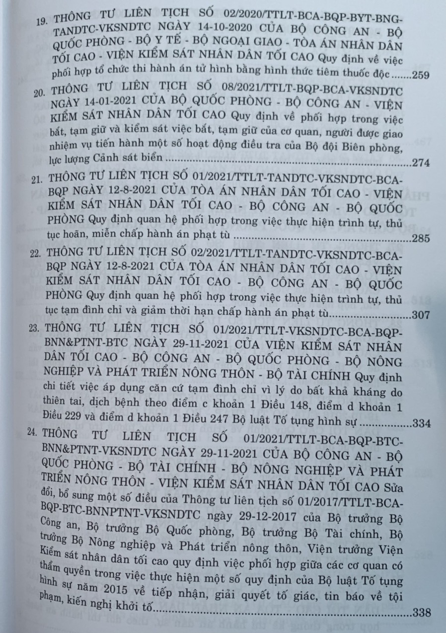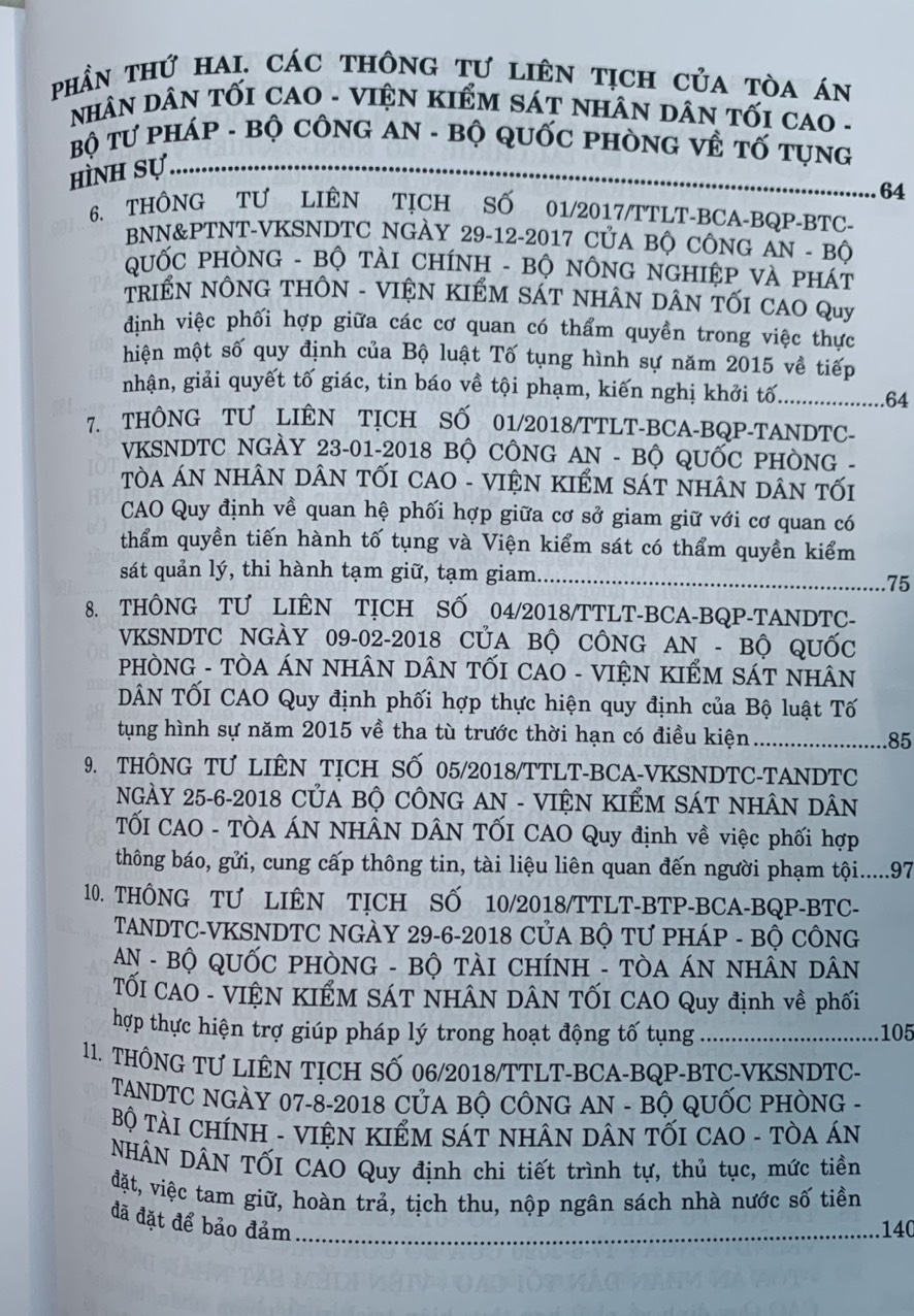 Phần thứ hai: Các Thông tư liên tịch của Tòa án nhân dân tối cao - Viện Kiểm sát nhân dân tối cao - Bộ Tư pháp - Bộ Công an - Bộ Quốc phòng về tố tụng hình sự