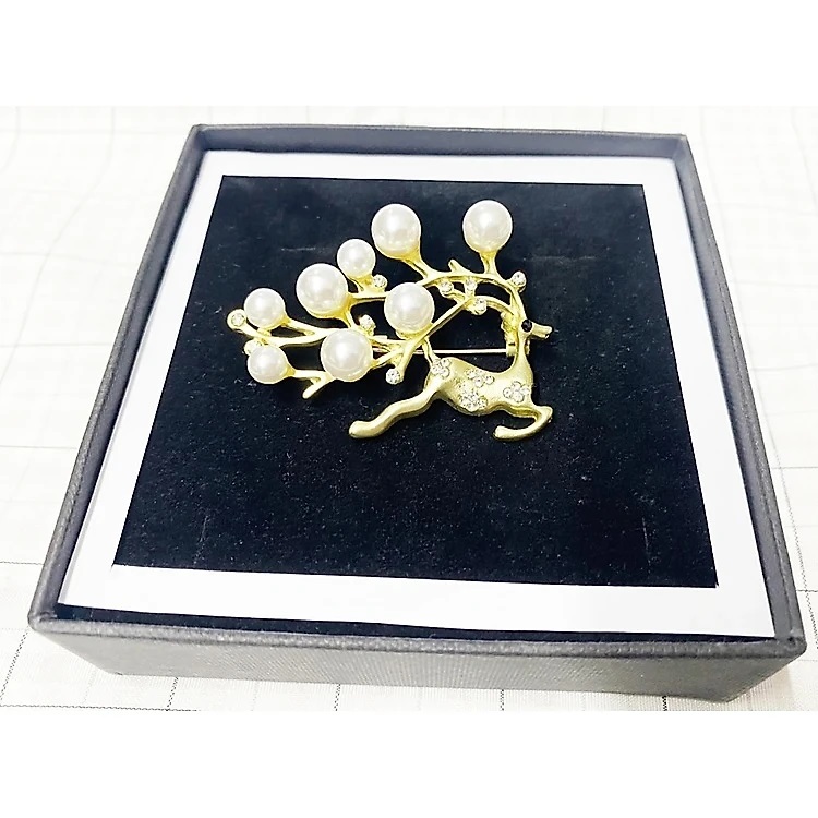 Trâm Cài Áo Nữ Quà Tặng Hươu Vàng Đính Đá Ngọc Trai Trang Nhã Sang Trọng (Kèm Hộp) Kích thước: 5x4cm Chất liệu: hợp kim không gây dị ứng, an toàn cho làn da của