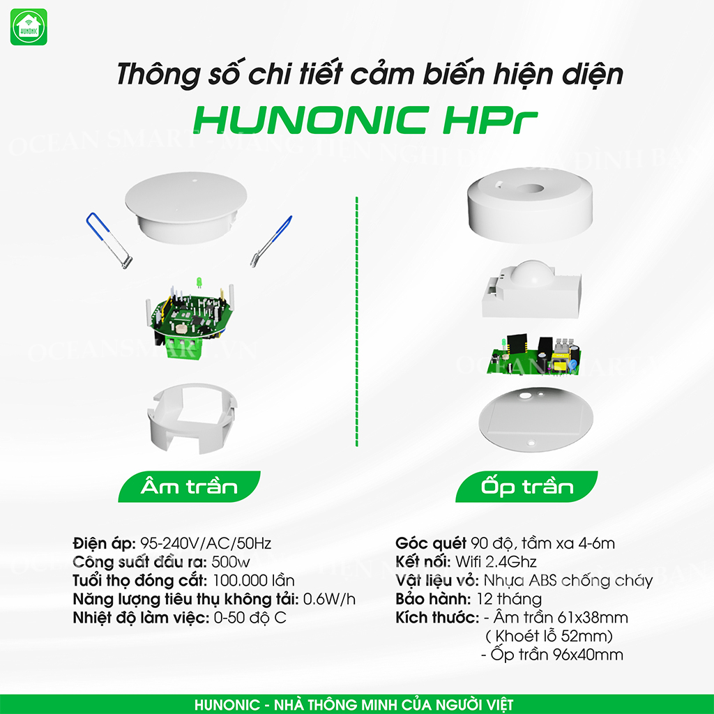 Cảm Biến Hiện Diện Hunonic HPR | Cảm Biến Tự Động Bật Tắt Đèn | OCEANSMART.VN