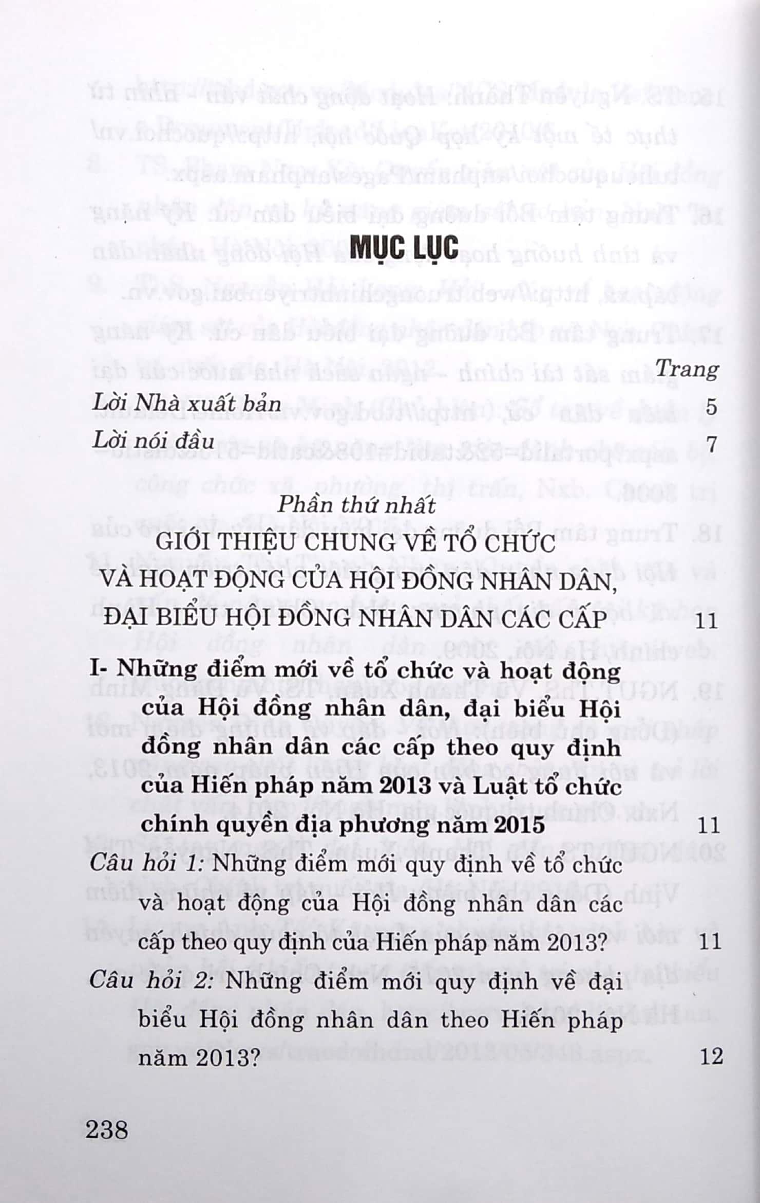 - Những điểm mới về tổ chức và hoạt động của Hội đồng nhân dân, đại biểu Hội đồng nhân dân cấp tỉnh, huyện, xã theo quy định của Hiến pháp năm 2013 và Luật tổ chức chính quyền địa phương năm 2015.