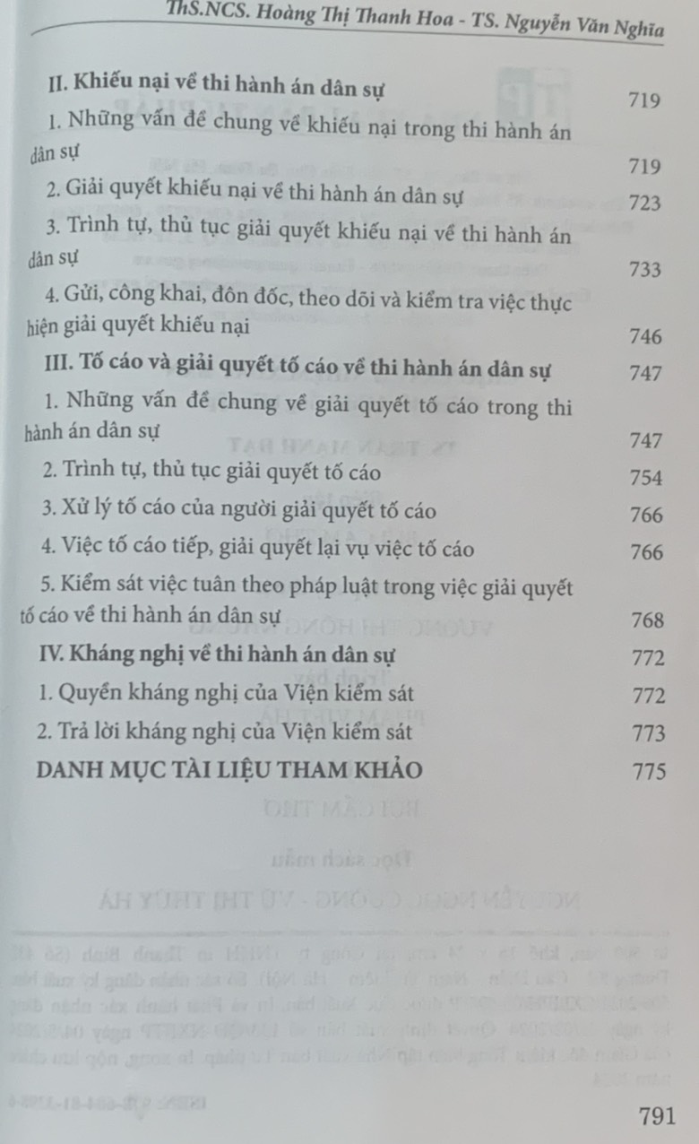 Cẩm nang thi hành án dân sự (Tái bản lần thứ hai, có sửa đổi, bổ sung) Tác giả: ThS.GV. Hoàng Thị Thanh và TS. Nguyễn Văn Nghĩa.