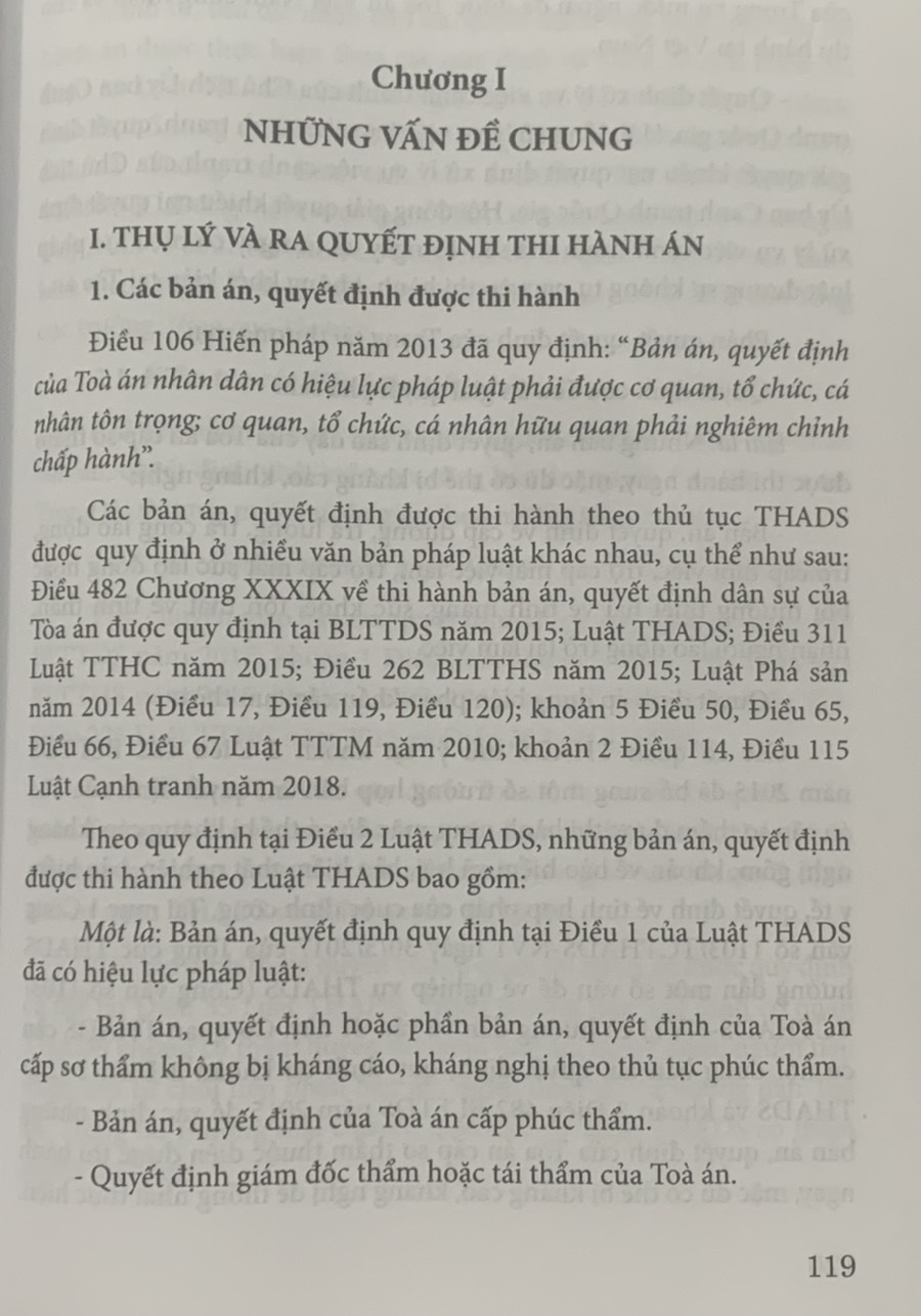 Công tác thi hành án dân sự luôn nhận được sự quan tâm của Đảng và Nhà nước vì đây là lĩnh vực rất khó khăn, phức tạp, liên quan trực tiếp đến quyền và lợi ích hợp pháp của các bên đương sự cũng như cơ quan, tổ chức, cá nhân khác có liên quan. Hiện nay, lĩnh vực thi hành án dân sự có số lượng rất lớn các văn bản hướng dẫn thi hành cũng như các văn bản pháp luật chuyên ngành khác có liên quan trực tiếp cả về pháp luật tố tụng và pháp luật nội dung, cùng với đó là những quy trình, thủ tục thi hành án dân sự rất chặt chẽ, đa dạng tùy thuộc vào đặc điểm, tính chất của từng loại bản án, quyết định khác nhau. Trong khi đó số lượng các sách, tài liệu thuộc lĩnh vực thi hành án dân sự tham khảo cho các kỳ thi tuyển dụng công chức, thi tuyển vào ngạch Chấp hành viên sơ cấp, thi nâng ngạch vào các ngạch Chấp hành viên, Thẩm tra viên, Thư ký của cơ quan thi hành án dân sự, cũng như phục vụ cho công tác chuyên môn, nghiệp vụ của Chấp hành viên, Thẩm phán, Kiểm sát viên và nhu cầu tìm hiểu, nghiên cứu của đông đảo sinh viên, học viên và của nhân dân trong lĩnh vực này vẫn còn hạn chế.