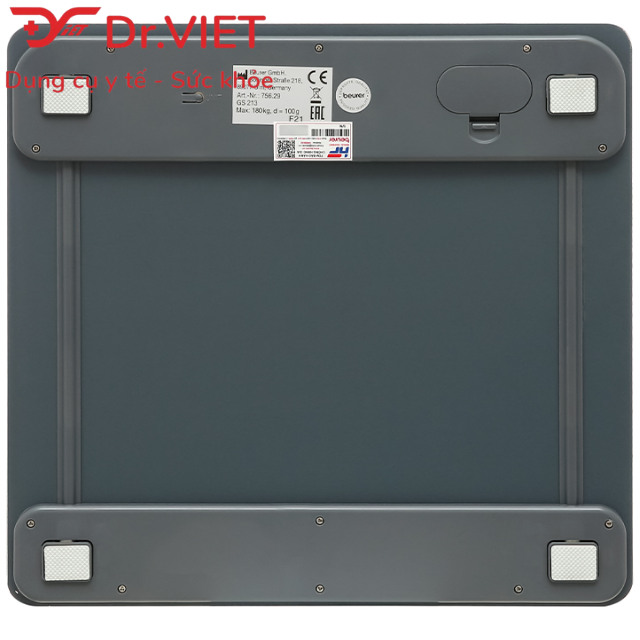 Cân điện tử mặt kính Beurer GS213 Cân điện tử đặt tại nhà tắm GS213 thiết kế mỏng nhẹ, độ bền cao, nên bạn có thể đặt cân ở bất cứ nơi đâu trong nhà, kể cả nhà tắm, tạo nên một không gian sang trọng. Bởi mặt bằng kính chịu lực dày 1,8cm cho bạn cảm giác an toàn khi sử dụng, có thể chịu được tải trọng người lên tới 180kg. Chiếc cân sức khỏe điện tử gọn nhẹ, vì vậy bạn có thể dễ dàng dịch chuyển nó đến bất cứ đâu. Sản phẩm sử dụng 2 pin CR2032 – 3V, tuổi thọ cao, sử dụng được rất lâu sau đó mới phải thay pin mới. Bên cạnh đó thì loại pin này cũng rất dễ tìm mua trên thị trường Việt Nam. Sản phẩm được bảo hành 24 tháng. ƯU ĐIỂM CÂN ĐIỆN TỬ NHÀ TẮM GS213 + Kiểu dáng sang trọng mỏng đẹp ưa nhìn. + Máy sử dụng nguồn pin: 2 x 3V CR2032 + Sẽ tự động tắt sau vài giây nếu không sử dụng tiết kiệm pin + Sản phẩm được kiểm định và chứng nhận đảm bảo chất lượng + Bề mặt phẳng, chiều cao 1,8 cm + Màn hình XL tiện lợi, hiển thị rõ ràng + Thiết kế mỏng chỉ 18 mm + Thông báo tình trạng quá tải + Chức năng tự động bật tắt nguồn + Trọng lượng tối đa cân có thể cân: 180 kg.   Các chữ số của màn hình có đèn nền màu trắng rất lớn và rất dễ đọc, và trọng lượng là đầu ra tính bằng kg, lbhoặc st. Khả năng chịu tải của cân thủy tinh là 150 kg. Nếu tải quá nặng, chỉ báo quá tải tích hợp sẽ phản ứng. Cân sức khỏe điện tử có độ chính xác lên tới 100g cho kết quả cân chính xác. Do thiết kế đặc biệt bằng phẳng, quy mô có thể dễ dàng và dễ dàng cất gọn. Màn hình với ánh sáng LCD trắng hiệu quả và thanh lịch bổ sung hoàn hảo cho thiết kế hiện đại. Mặt kính giúp bạn dễ vệ sinh, lau chùi. Cân điện tử đặt nhà tắm mà không bị hỏng. THÔNG SỐ KỸ THUẬT Cân điện tử mặt kính Beurer GS213: