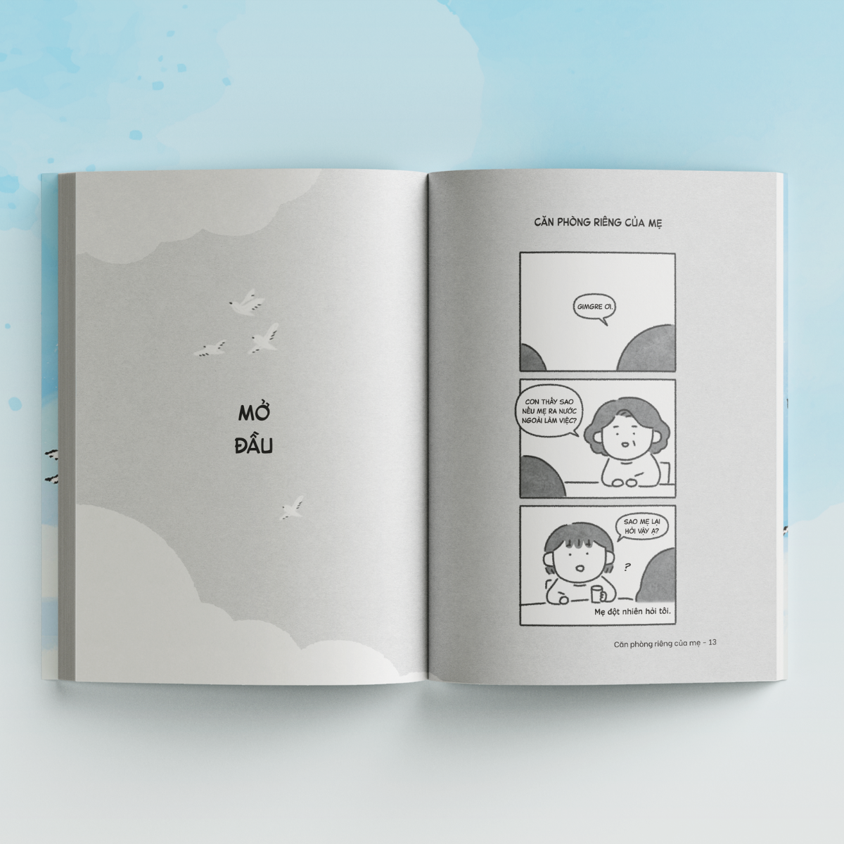 “Căn phòng riêng của mẹ” là cuốn sách tranh kể về một hành trình đầy cảm xúc của người mẹ tuổi 50 đã dám bước ra khỏi vùng an toàn, để bay từ Hàn Quốc đến Việt Nam làm việc. Dù phải rời xa gia đình và cuộc sống thân quen, trải qua nhiều băn khoăn lo lắng, nhưng chính sự thay đổi ấy đã mang đến cho mẹ một căn phòng riêng, một thế giới mới, nơi mẹ có thể theo đuổi cuộc sống mình mong ước.