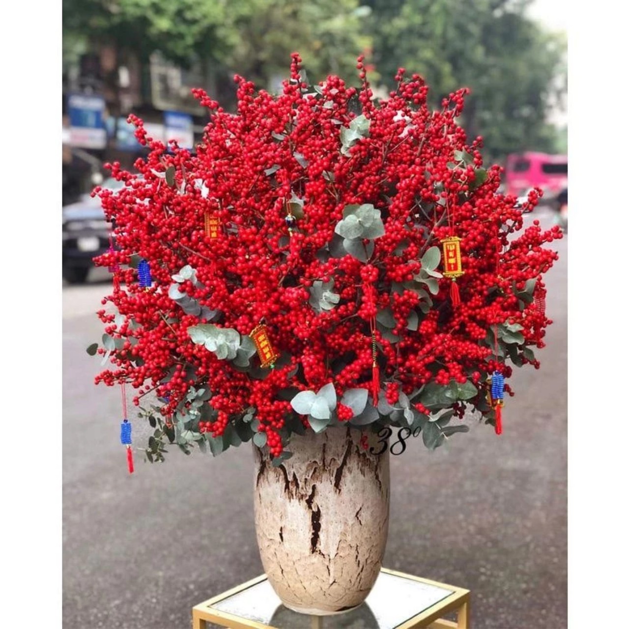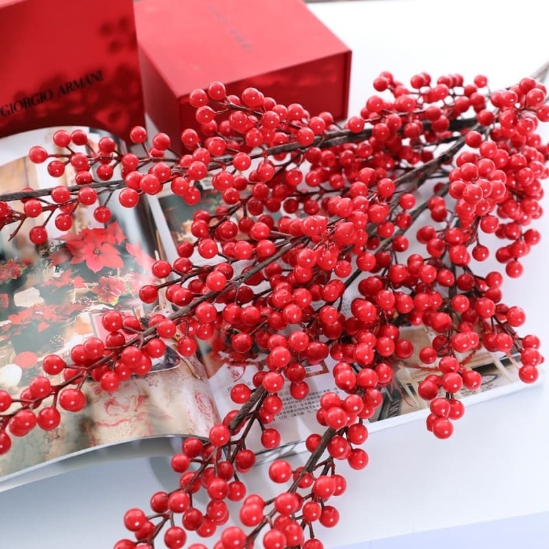 Cành đào đông đỏ trang trí Tết tài lộc