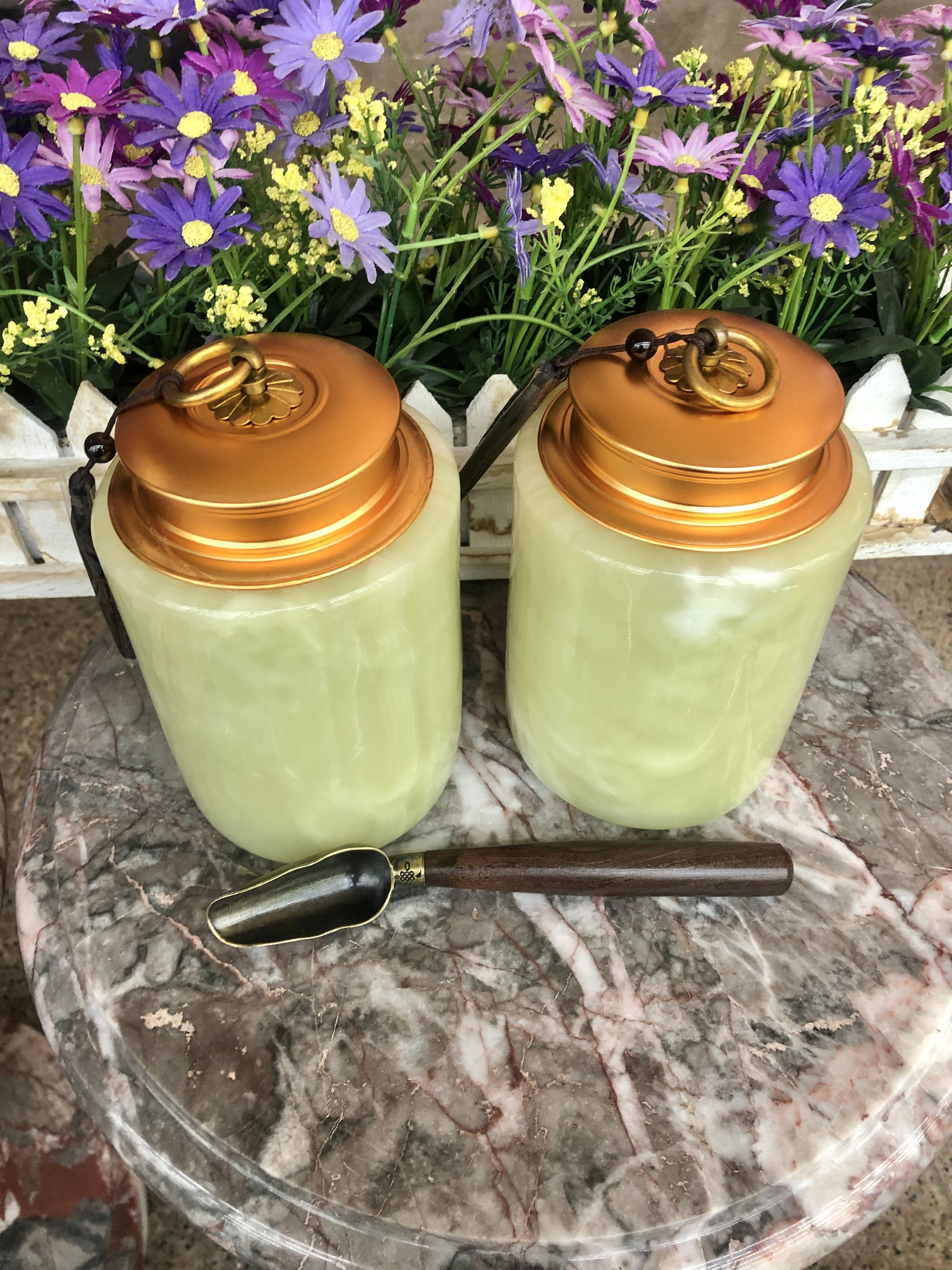 Hũ trà bằng ngọc onyx vàng