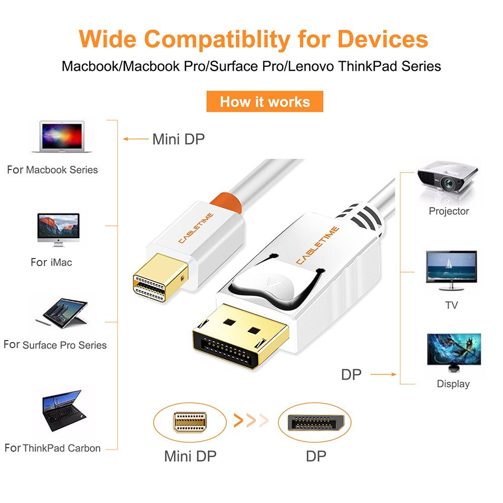Features: Mini DP Port support DP v1.2, HDMI Port support v1.4. Provide 1920x1200 (1080P) full HD video and flawless audio to enjoy movie on big display at home. Gold-plated connector offers great signal performance reliable