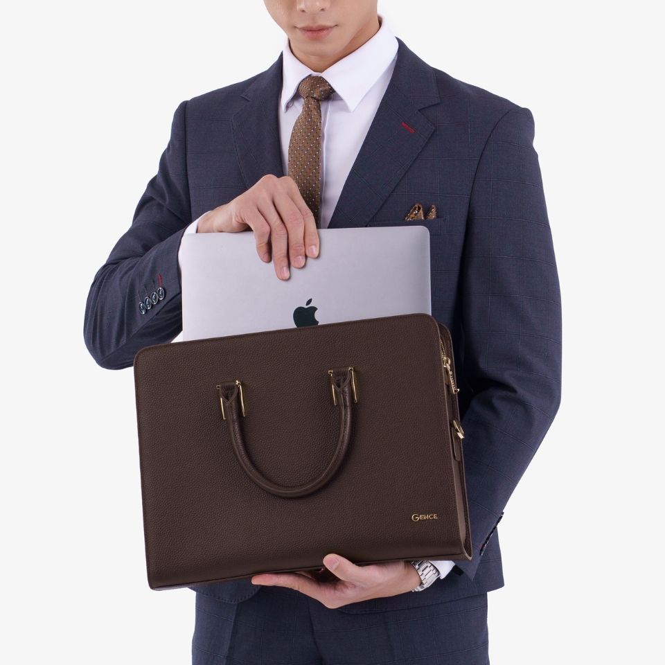 ✨Cặp Da Doanh Nhân Túi Xách Công Sở GENCE CTS13 Da Bò Khóa Số Cao Cấp Màu Nâu