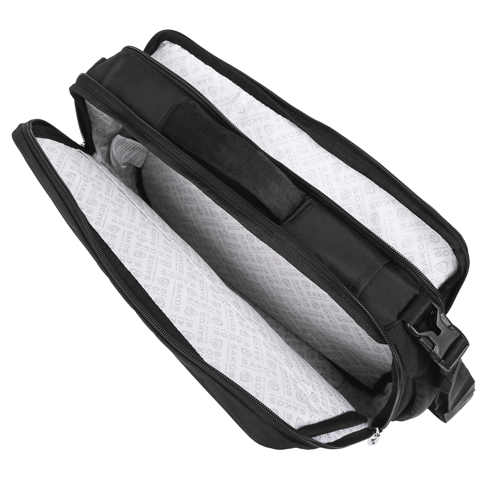 2 ngăn phụ nằm ở mặt trước sử dụng để sắp xếp các loại phụ kiện với nhiều ngăn nhỏ bên trong theo ý muốn của người sử dụng. Dòng chữ Sakos được dính kèm lên bề mặt ngăn phụ trở nên nổi bật trên bề mặt ngăn phụ lớn.