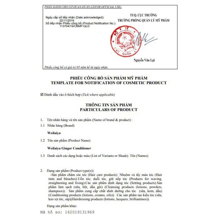 - Thoa dầu xả gừng lên, tiếp tục mát xa nhẹ nhàng 3 - 5 phút rồi xả lại với nước VẬY DÙNG SẢN PHẨM CÓ AN TOÀN HAY KHÔNG? WEILAIYA VIỆT NAM tự hào là một trong những nhà phân phối chính được cung cấp giấy phân phối độc quyền, cam kết sản phẩm được bán ra hoàn toàn CHÍNH HÃNG! WEILAIYA VIỆT NAM cam kết: