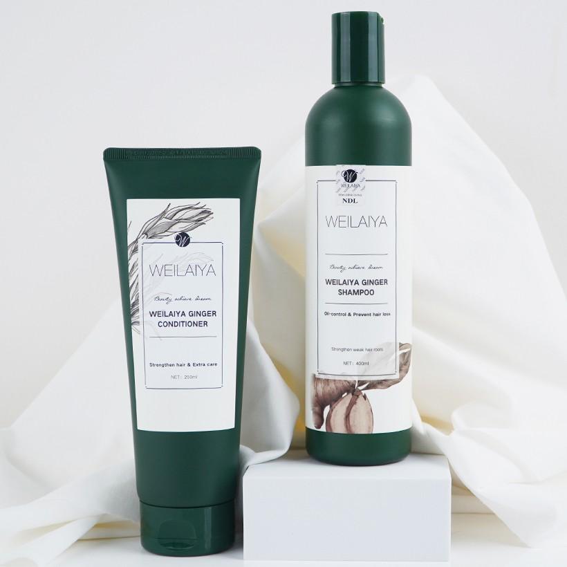 Cặp dầu gội xả gừng kích mọc tóc Weilaiya gồm: - 1 Dầu gội gừng kích mọc tóc Weilaiya Ginger Shampoo 400ml - 1 Dầu xả gừng kích mọc tóc Weilaiya Ginger Conditioner 250ml -