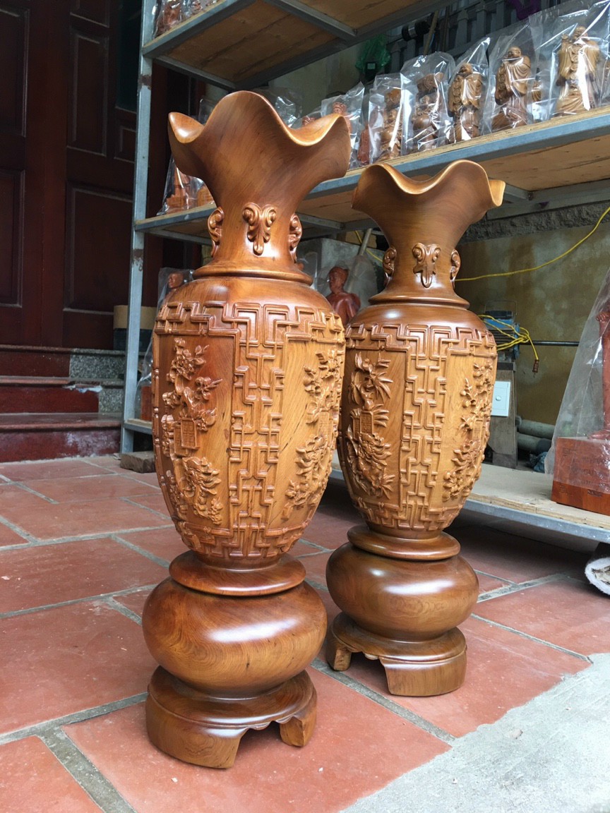 Cặp Bình Gỗ nu gõ hay gõ vẽ nu cao tròn đều đẹp cao 60cm x đk 20cm ý nghĩa bình an , phú quý Anh Chị trưng phòng khách nhà, công ty, bàn thờ