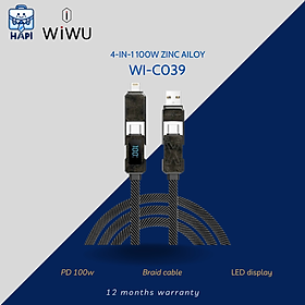 Dây Sạc Nhanh WIWU Titan 4in1 Wi-C039 100W Bọc Dù, Titan, Chống Gẫy, Màn Led Hiển Thị
