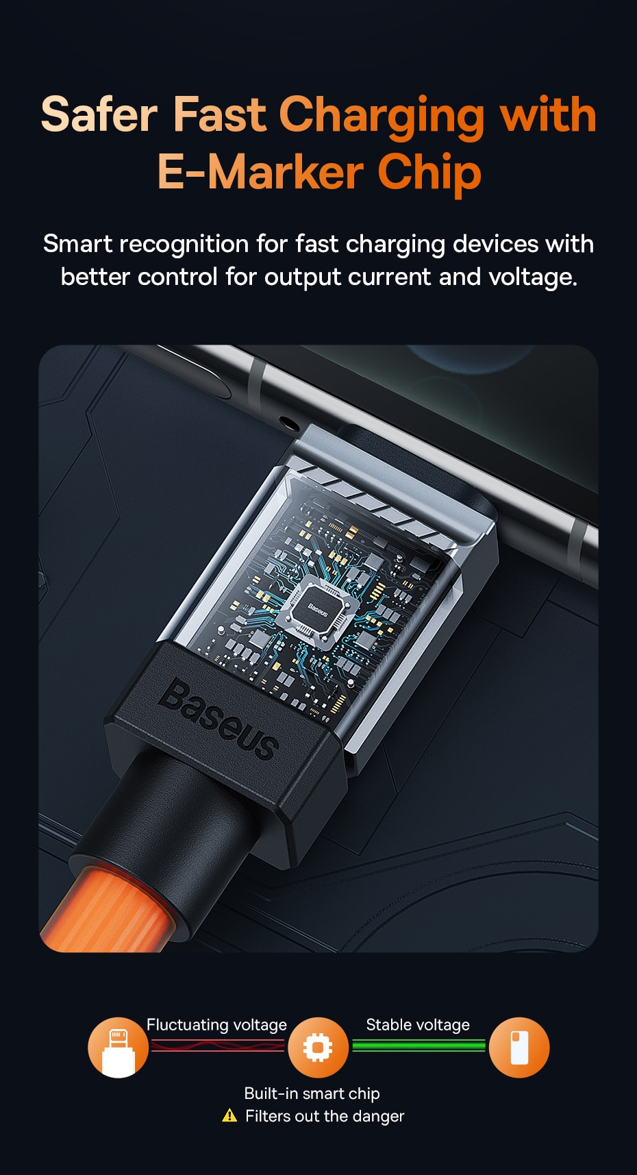 Tính năng Cáp Sạc Nhanh C to C Baseus Dura Series 240W (48V/5A, 480Mbps) Công Suất Sạc Siêu Khủng 240W Đây chính là điểm nhấn ấn tượng nhất của Baseus DURA Series. Với công suất sạc