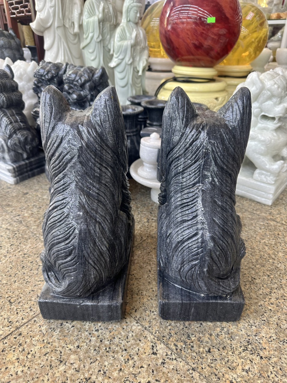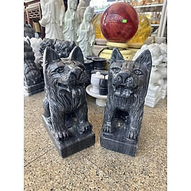 Chất liệu: Đá cẩm thạch đen Kích thước: Dài 22 cm x Rộng 12 cm x Cao 30 cm Khối lượng: 22 kg Chó đá có tên gọi khác là thạch linh cẩu là một