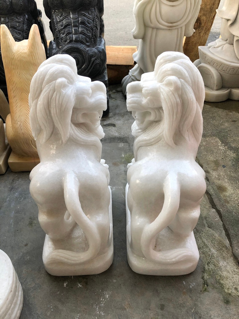 ✨Cặp tượng sư tử phong thủy gác cổng, để mộ đá cẩm thạch trắng - Cao 40 cm