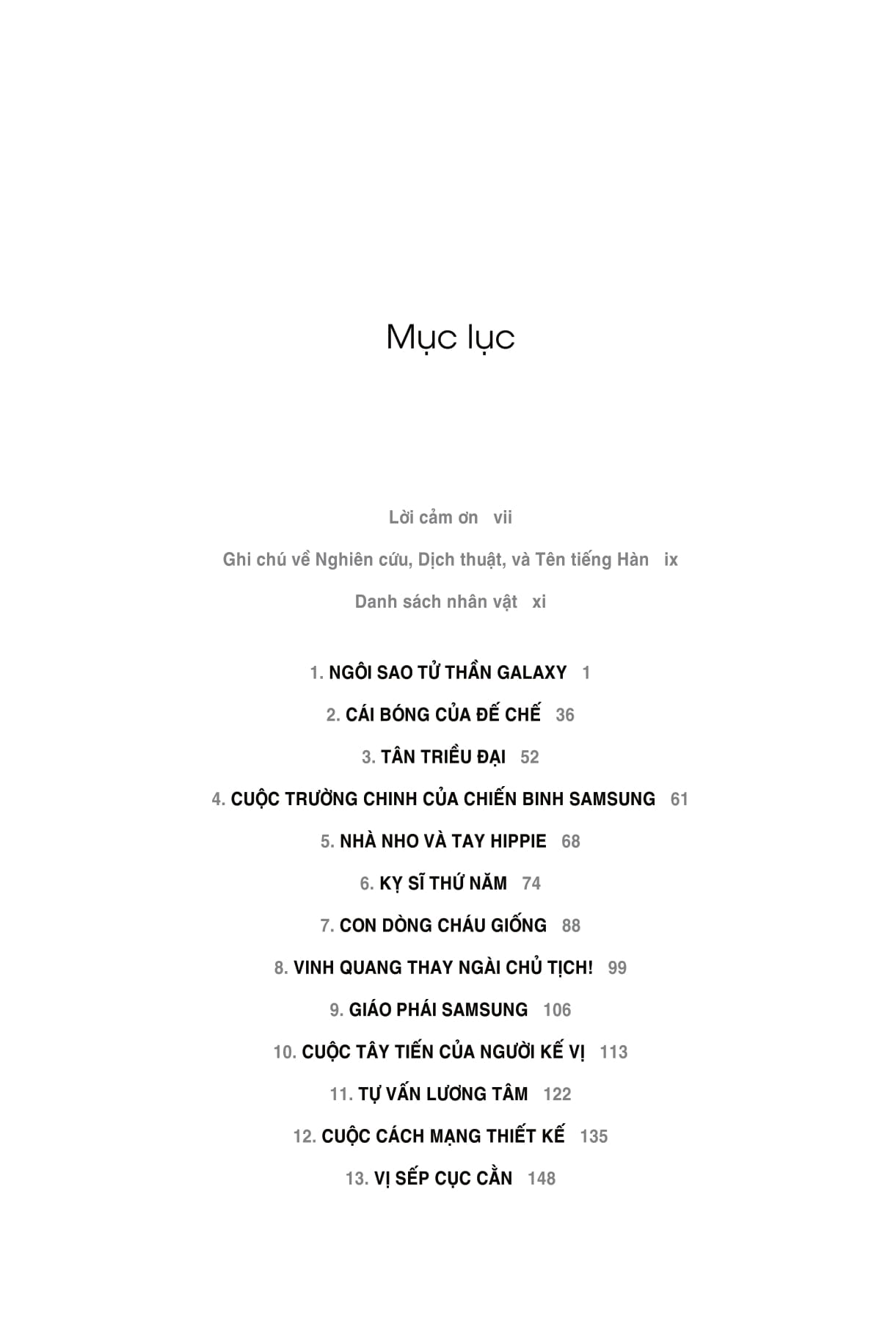 Dựa trên nhiều năm đưa tin về Samsung cho The Economist, The Wall Street Journal và Time, từ cơ sở của tác giả ở Hàn Quốc, và vô số nguồn tin bên trong và bên ngoài công ty, Geoffrey Cain cung cấp những câu chuyện "thâm cung bí sử" đằng sau bức màn của một tập đoàn lớn nhất Hàn Quốc và thế giới công nghệ. Trong nhiều thập kỷ bị giới công nghệ xem như là kẻ mau mắn theo đuôi chứ không phải là người dẫn dắt cách tân, Samsung ngày nay đã phát triển để trở thành công ty dẫn đầu thị trường ở Mỹ và toàn cầu. Họ đã chiếm lĩnh một phần tư thị trường điện thoại thông minh và trở nên cực kỳ sáng tạo trên mọi mặt trận.