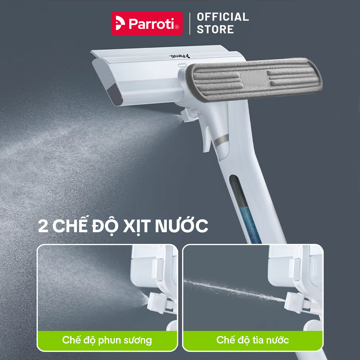 Cây lau kính, gạt chùi kính đa năng 4 trong 1,Có chức năng phun sương, gom được nước thừa trên kính - Parroti Shiny SN04 được thiết kế cực kỳ thông minh, thao tác đơn