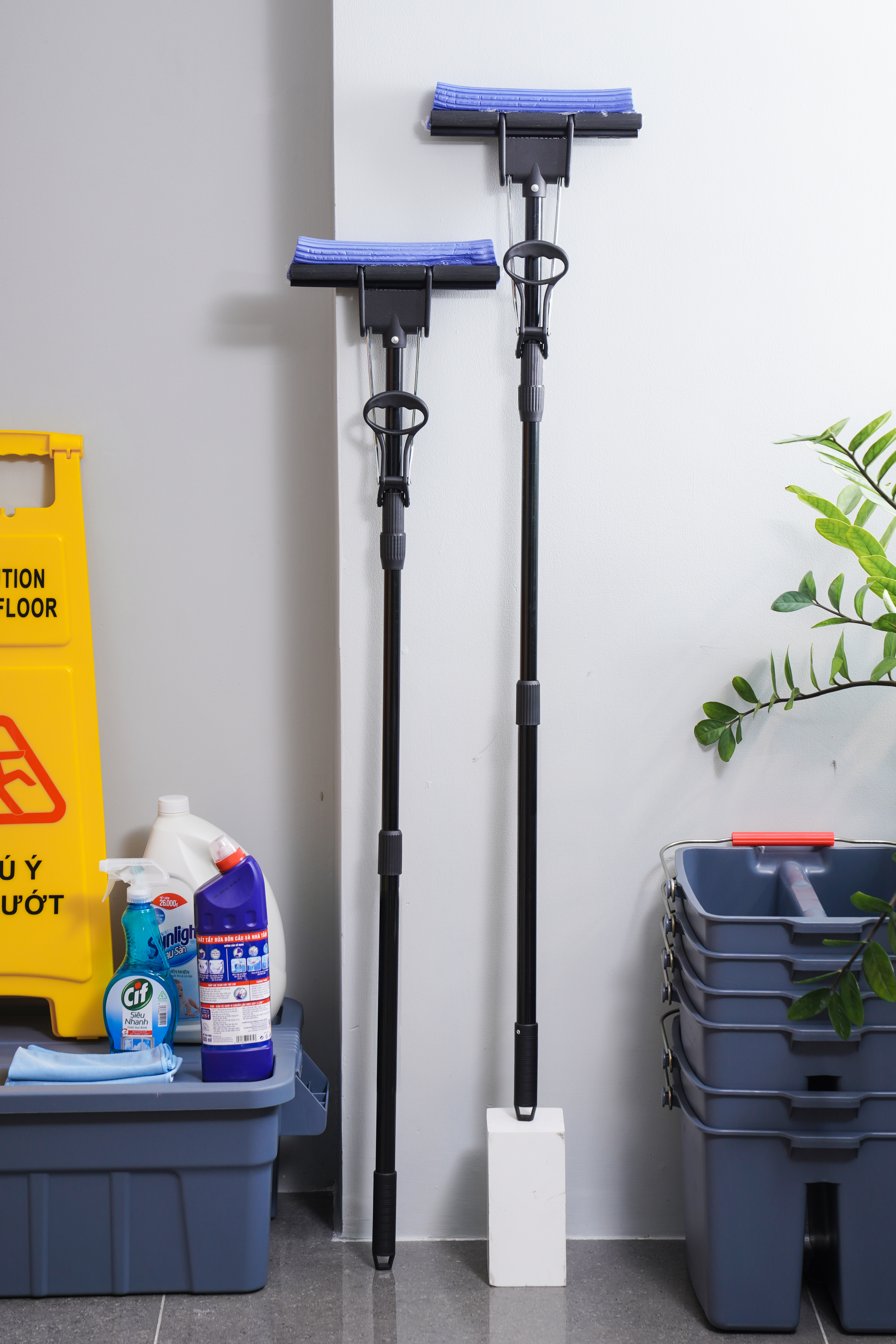 Combo 02 Cây gạt nước sàn sản xuất tại Nhật Bản TIẾT KIỆM HƠN KHI MUA COMBO Tay cầm làm bằng nhôm cao cấp, siêu nhẹ, sơn xanh dương Gạt nước là xốp cao cấp