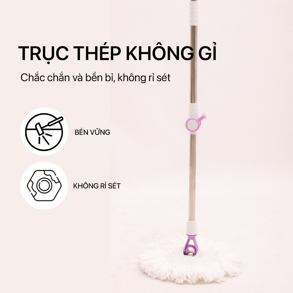 - Đặc điểm nổi bật: - - Chất liệu thép không gỉ: Chất lượng đảm bảo, tuổi thọ kéo dài. - - Đường kính bông lau lên đến 40cm: Cải thiện khả năng làm sạch