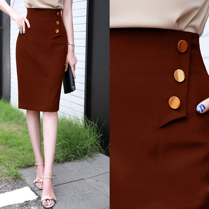 - Tên sản phẩm: Chân váy bút chì lưng cao thiết kế phối nút phong cách LC19 chất liệu vải nhập có độ co giản tốt.