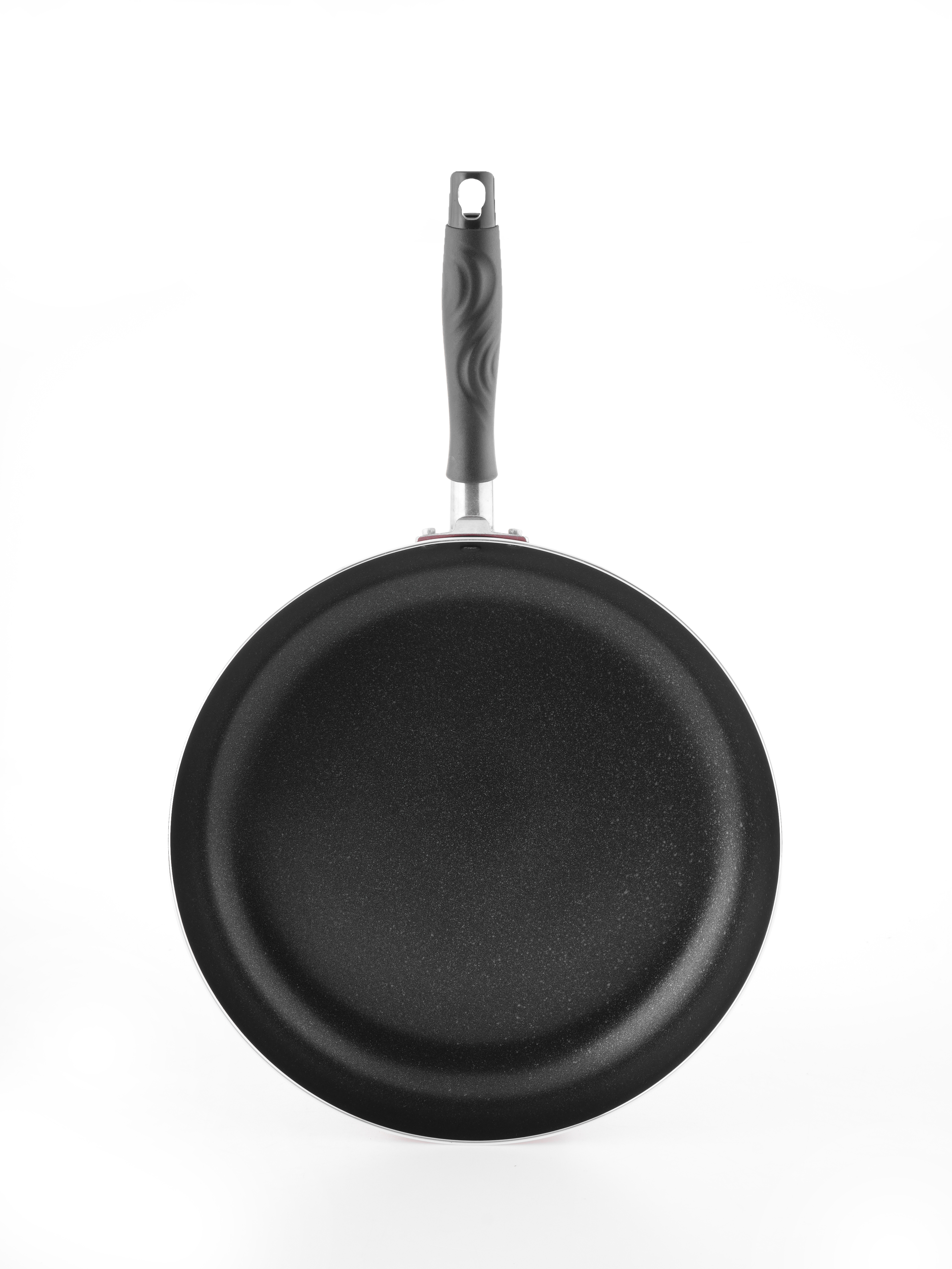 Chiếc chảo thanh lịch này từ Bộ sưu tập Burgundy của chúng tôi được làm bằng nhôm rèn với lớp phủ đá cẩm thạch chống dính. Đáy cảm ứng, được tạo ra với sự hỗ