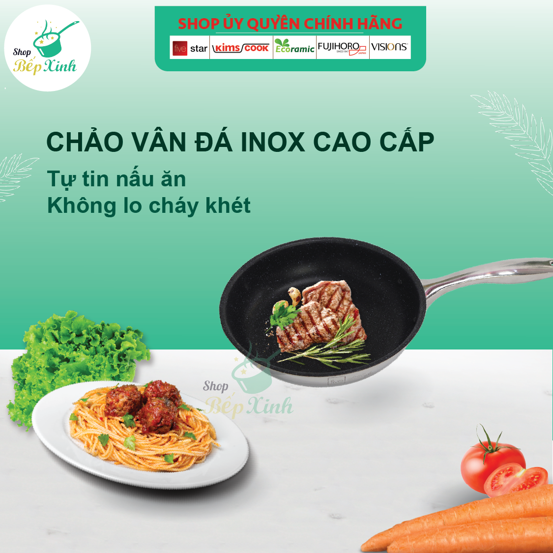 Chảo Inox 3 lớp chống dính vân đá Fivestar đáy liền fullsize 22/24/26/28cm dùng bếp từ