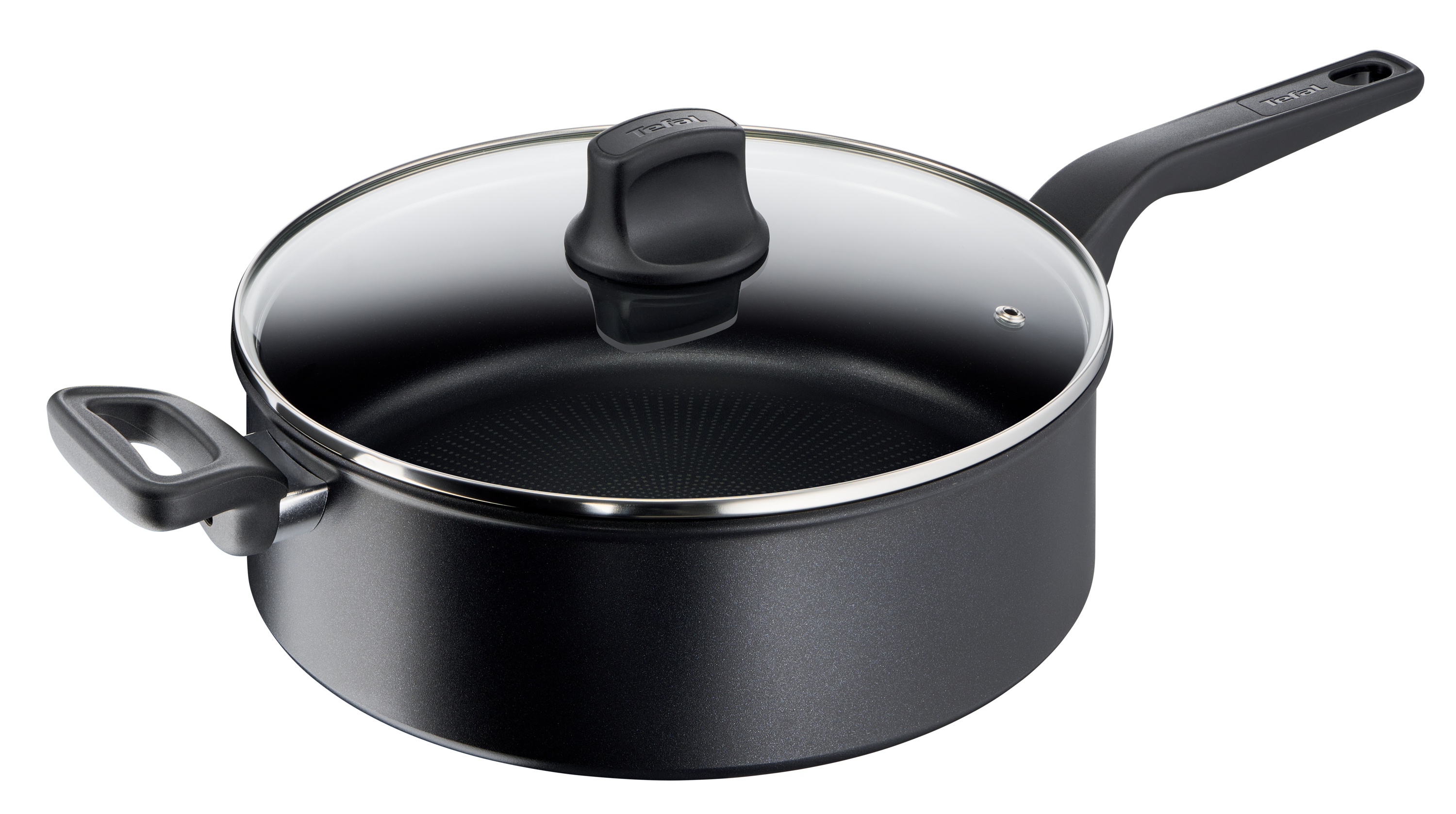 Kết thúc phản ứng tổng hợp cứng được chải: Thiết kế được cấp bằng sáng chế độc quyền của Tefal với vẻ ngoài chải chuốt gây ấn tượng với hiệu suất và sự sang trọng và công nghệ phản ứng tổng hợp cứng; an toàn với lò nướng lên đến 175 ° C